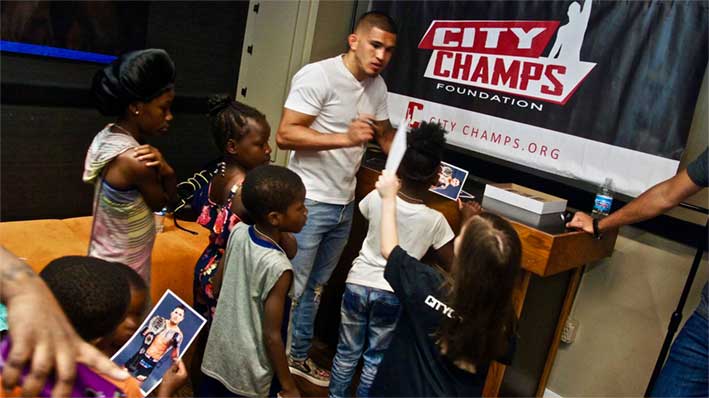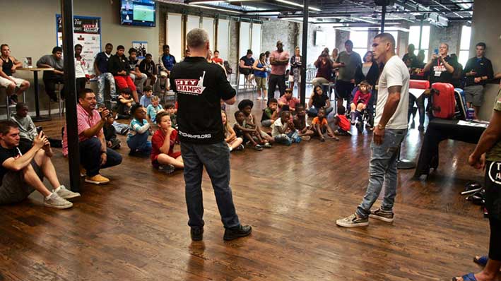 The scholarship giveaway event will offer demonstrations of martial arts training, the bedrock of City Champs’ mission. City Champs seeks to keep children off the streets and in gyms, where they build character and learn vital life lessons in discipline, fitness, self-defense and respect.