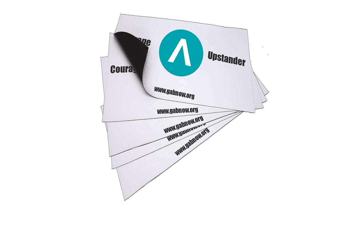 GAB “Upstander” logo magnets are affordable and perfect for the refrigerator, school locker, gym locker or any metal surface you can think of. Display your GAB magnets and show the world you are an “Upstander” and you support the end to bullying in a positive and non-threatening way.
