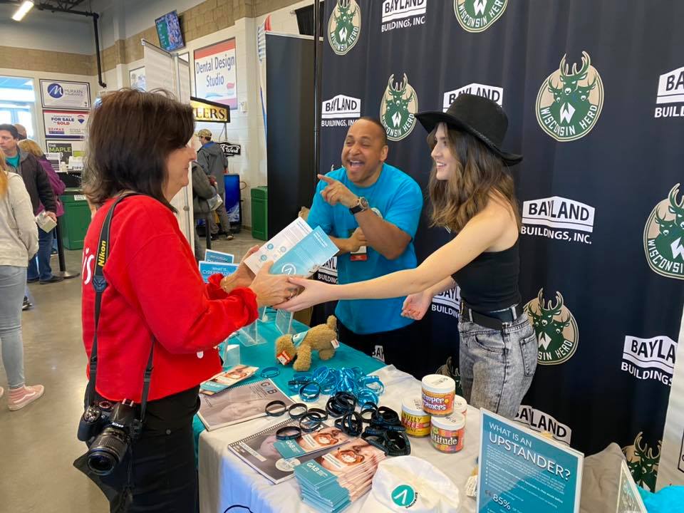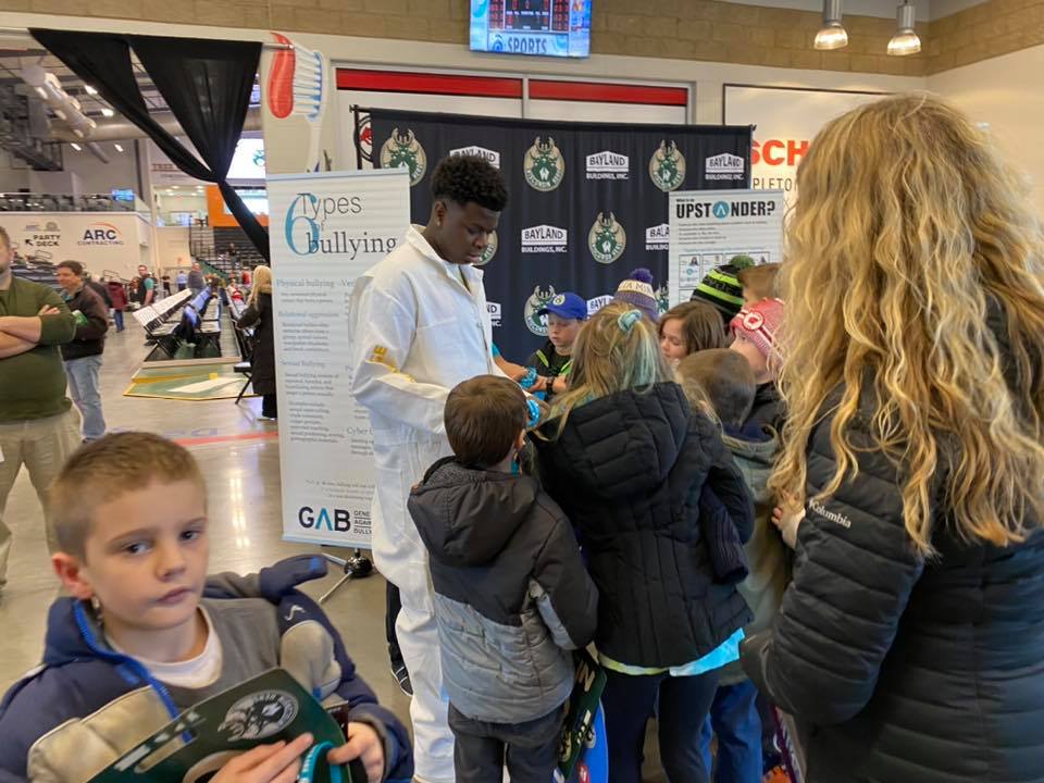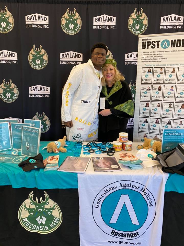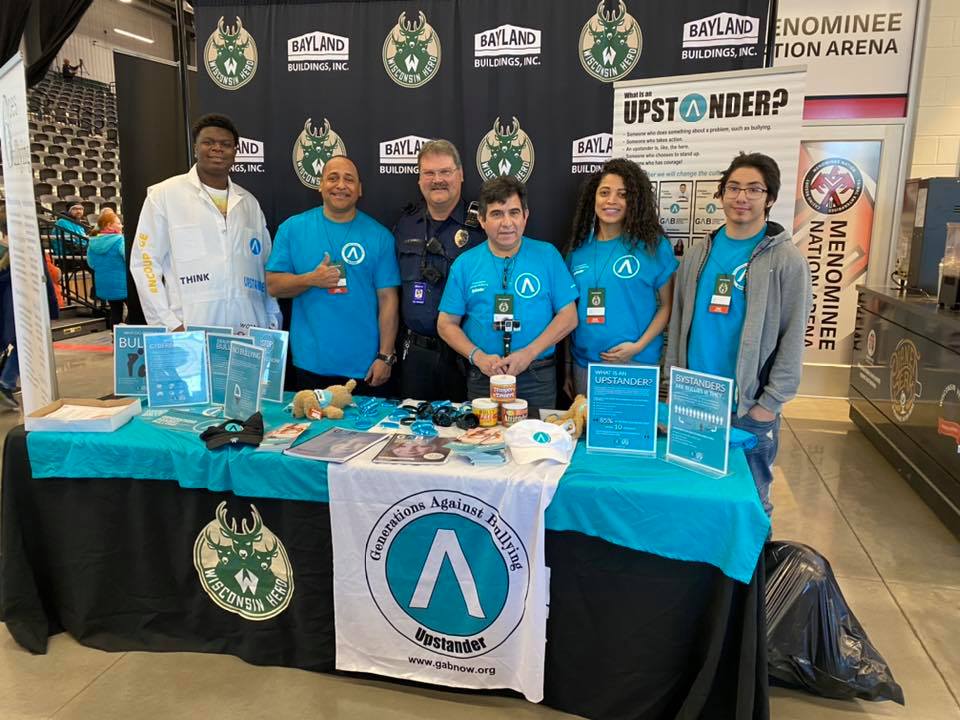 We had a wonderful day at the Menomonee Nation Arena with the Wisconsin Herds and 3000 students from Oshkosh School District. Generations Against Bullying had lots of students at our booth. Thank you Jahbarri, Frankie, Michael, Adriana, Carlos, Sonya, Kysha and Jesus for participated. Jahbarri really got the students going with his Stand Up song and he led the students to make the Upstander Pledge. Wow! It was powerful.