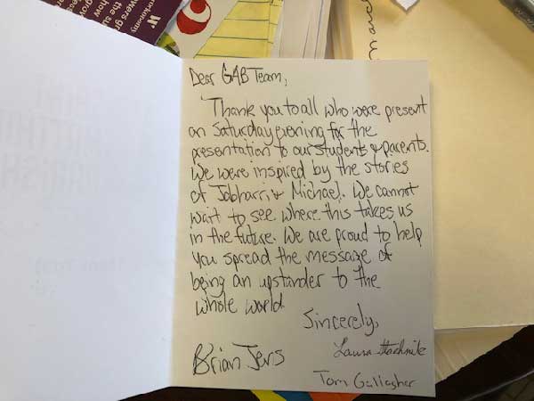 The evening presentation included students and parents and the feedback was tremendous, including a vow from students, to help spread the message against bullying and creating new upstanders for a better world.